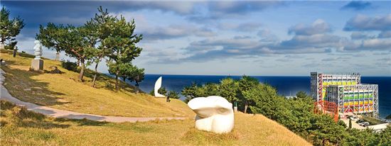 '세상에서 바다와 가장 가까운 역'으로 유명한 **정동진**! 근처에 있는 **하슬라아트월드**는 바다를 품은 예술 공원이야. 조각 공원 곳곳이 전부 인생샷 포토존이니, 예쁜 옷 꼭 챙겨가!