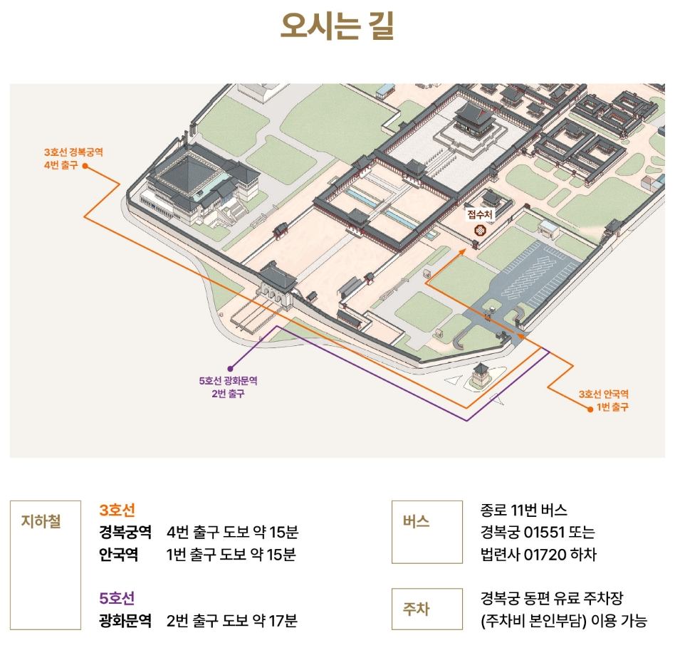 - 쉬는 날: 매주 화요일은 휴궁이니까 헛걸음하면 안 돼!